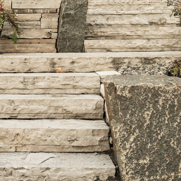 La pierre naturelle est offerte dans une grande variété de textures, dimensions et choix de couleurs pour différents types d’aménagements.